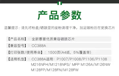 hao jing applicable HP 388A chip HP88A P1007 P1008 P1108 M1136 M1213nf chip count M126nw