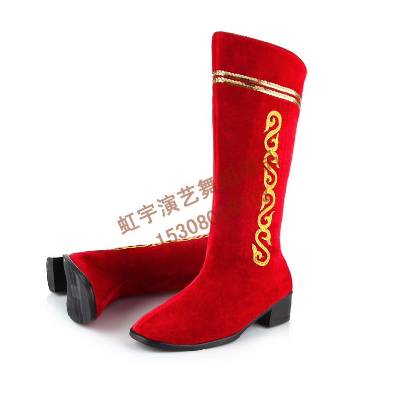 Mongolian Tibetan and Qiang ethnic Mongolian dance boots in Xinjiang Uygur Autonomous Region Drum Seedlings Song Red Bright Pieces of Grassland Performance Horse Boots