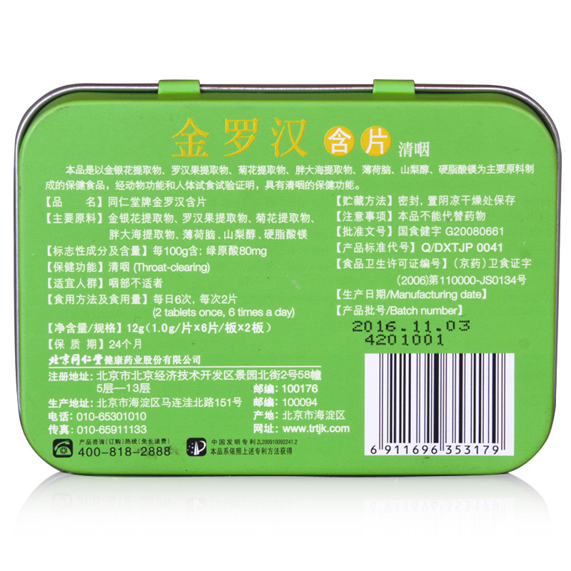 Beijing Tongrentang tablets Ginrohan lozenge 1 0g sheet * 6 sheet plates * 2 plate clear and silver gold and silver rohan chrysanthemum