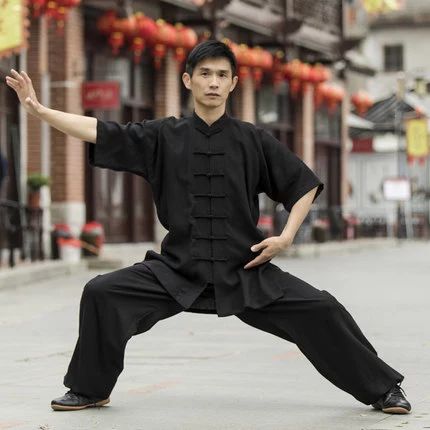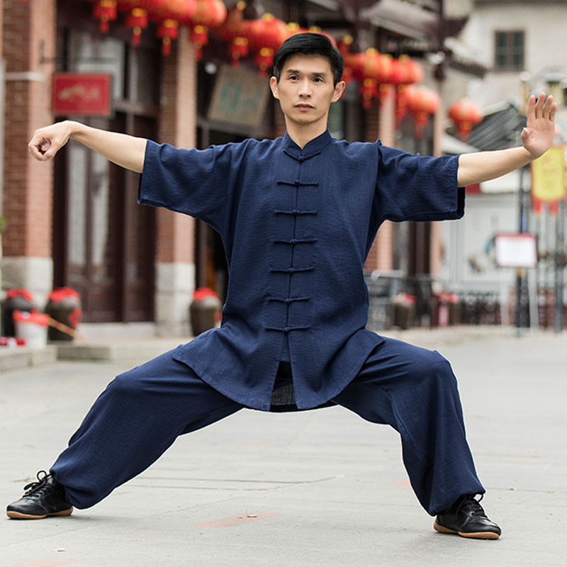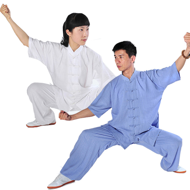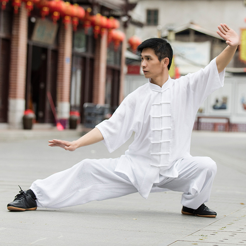 Bai Ling spring and summer cotton and hemp brocade men's and women's tai chi clothes Practice clothes Martial arts clothes Cotton and hemp brocade tai chi clothes with short sleeves