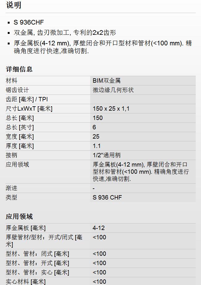 German Bosch horse knife saw blade S 936CHF single reciprocating saw 150mm thick metal 4-12 cut-Taobao