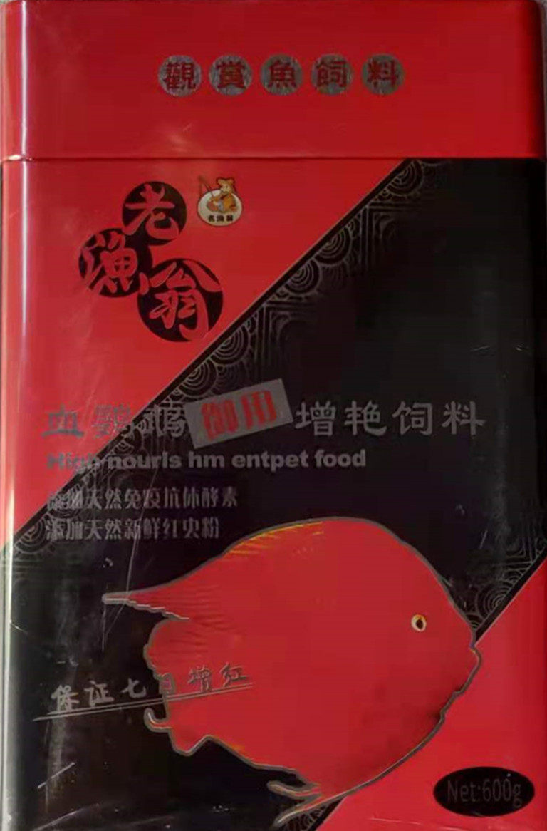 Old fisherman blood parrot fish feed goldfish tropical fish blood parrot royal fish red and colored