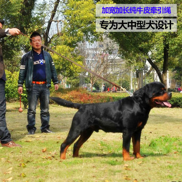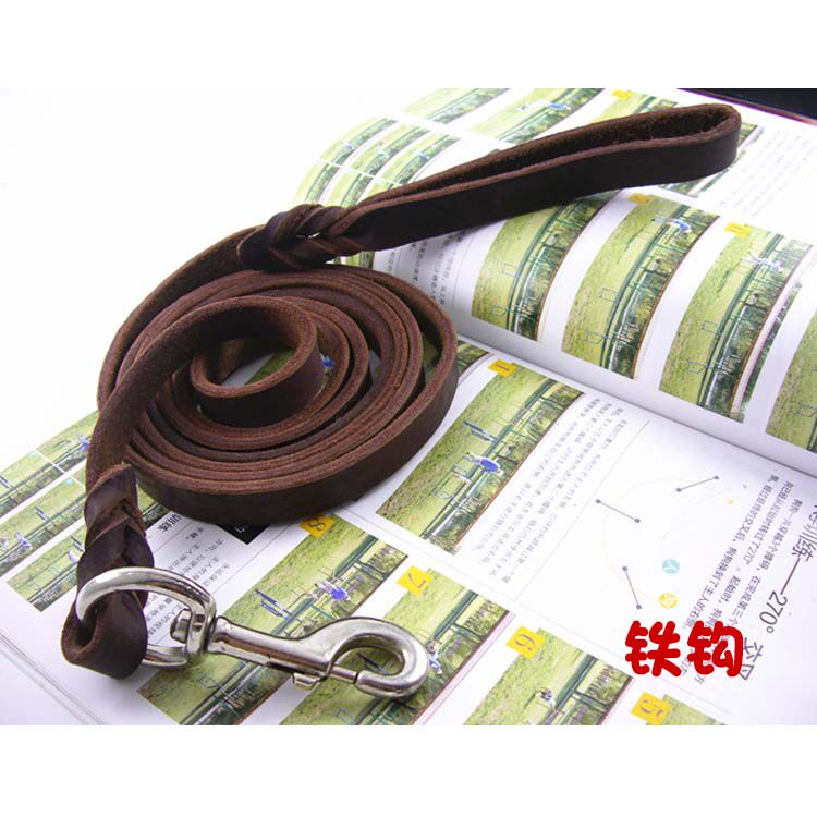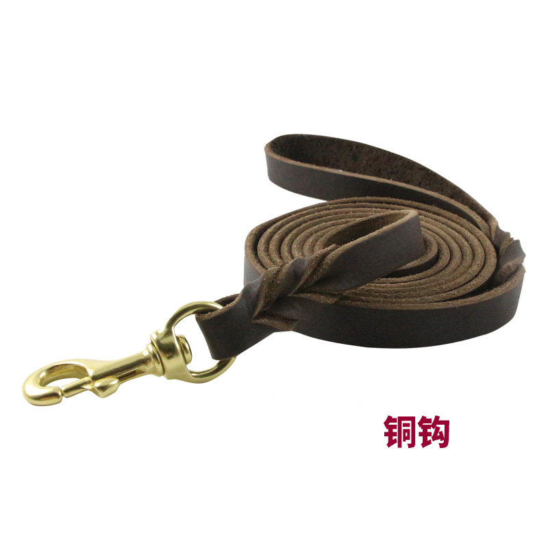 Lengthened cow leather gold wool dog necklace large and medium Depasture dog dermis Puppy dog traction rope for dog rope Labrador