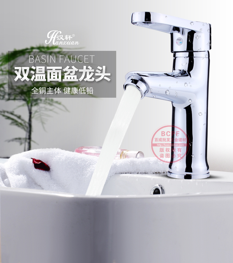 Basin washbasin faucet Hot and cold powder room basin washbasin faucet All copper high single hole single handle