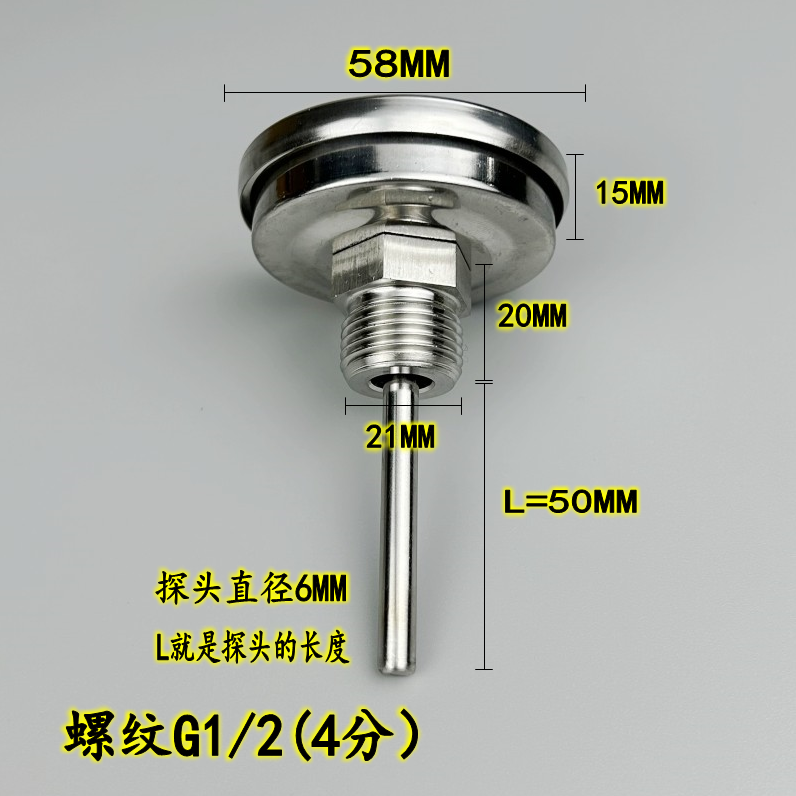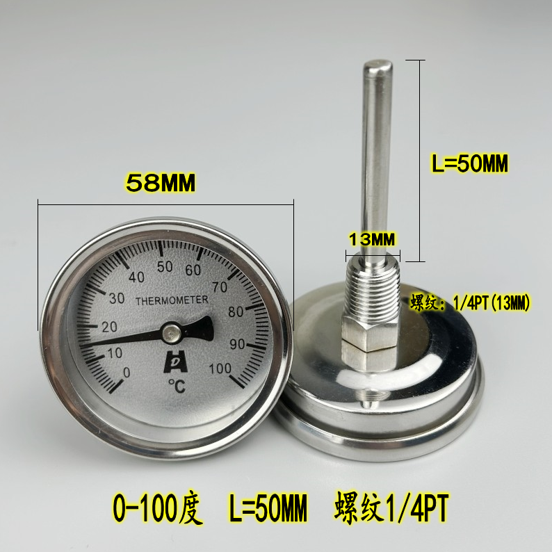 304 stainless steel bimetal thermometer WSS-303 pipeline water temperature table 50 100 150 200 300 degrees