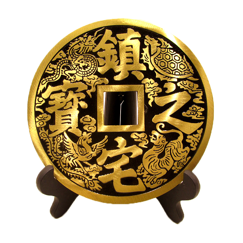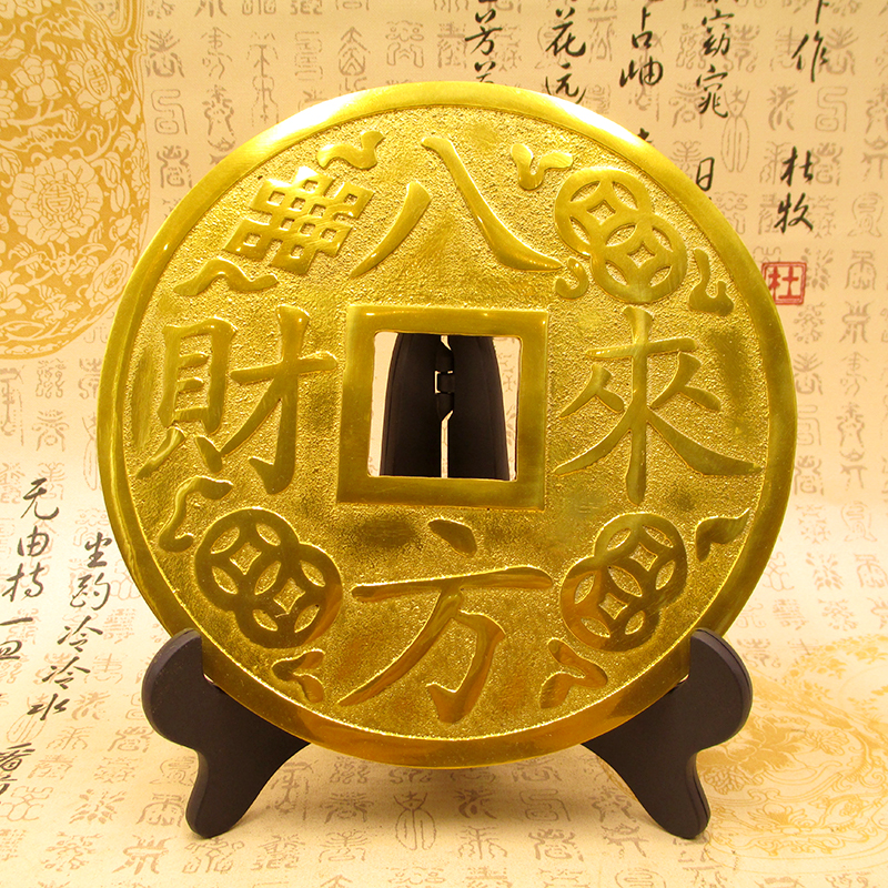 Pure Copper Recruit Treasure in Baozhen Residence Large Copper Money Pendulum with Eight Fang to Finance Antique Bronze Money Decorations for Feng Shui Furnishing
