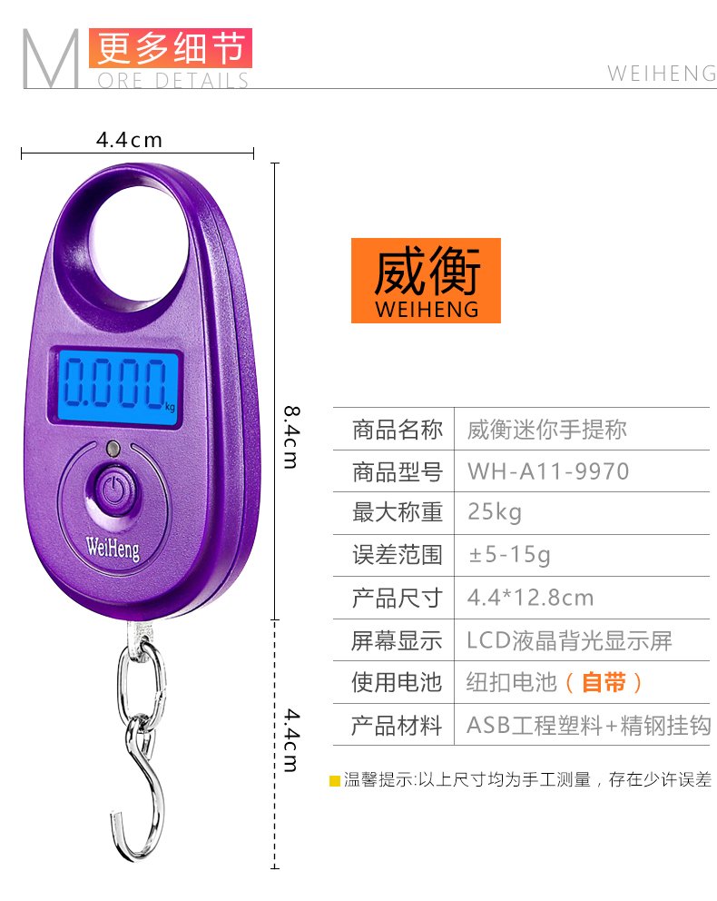 Weiheng high-precision electronic scale portable to buy food with hand called express delivery parcel scale 25kg catty