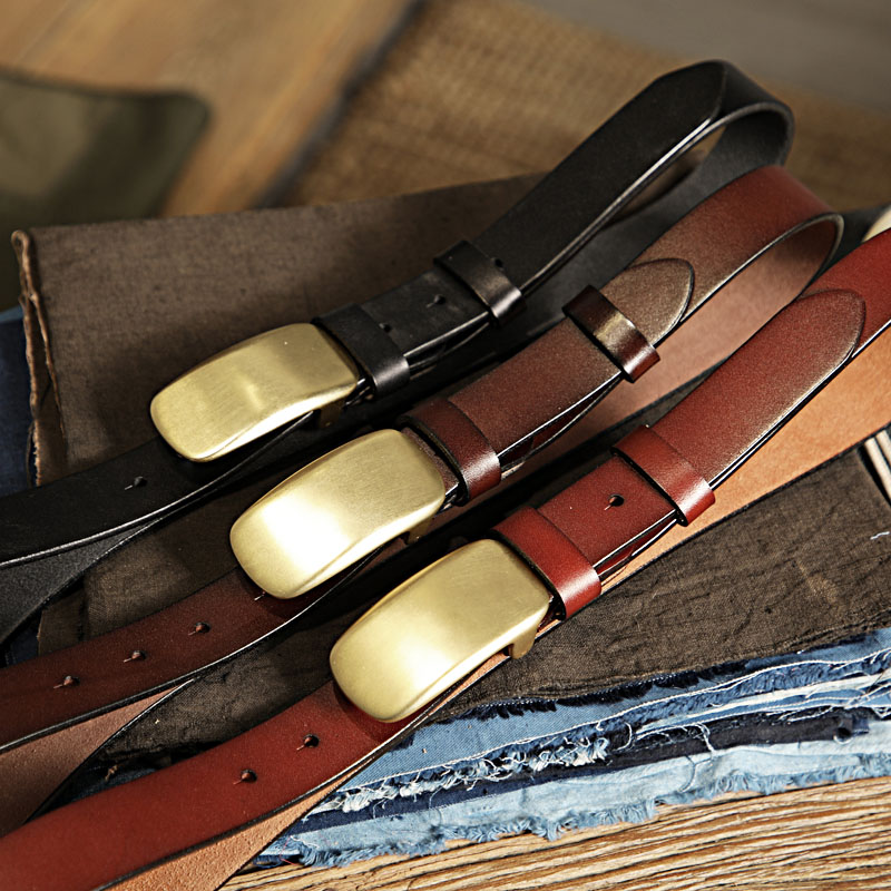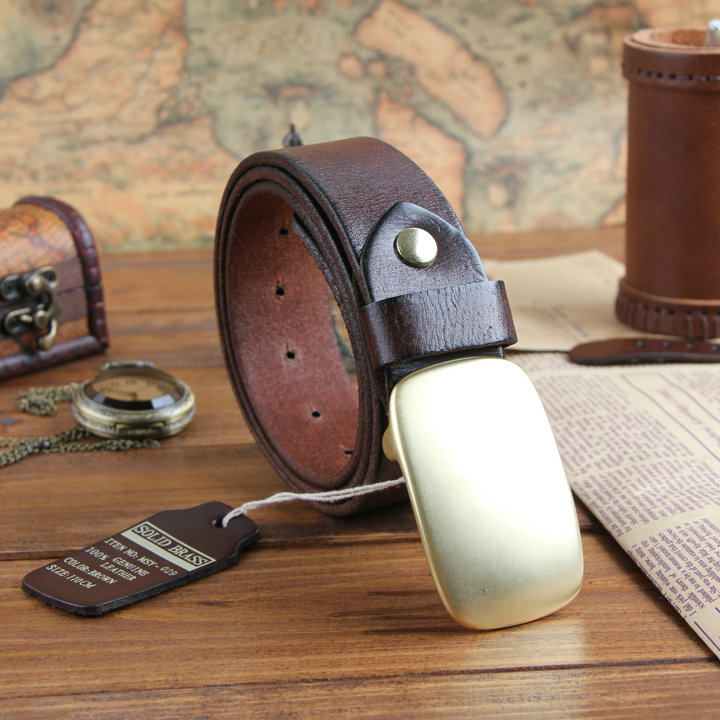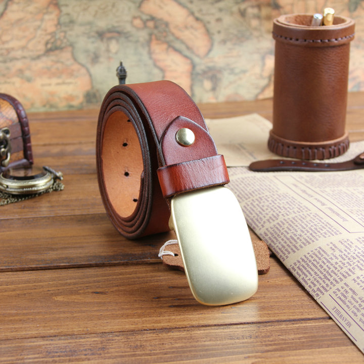Original New Retro Tide Men Genuine Leather Waistband Plant Tannic Leather Smooth Buttoned Business Pants With Personality Pure Copper leather strap