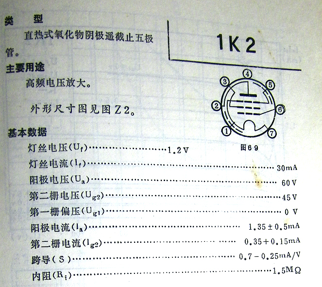 Beijing vacuum tube 1K2 (1T4 1F33) direct heat remote cut-off high frequency voltage amplifier five-stage tube