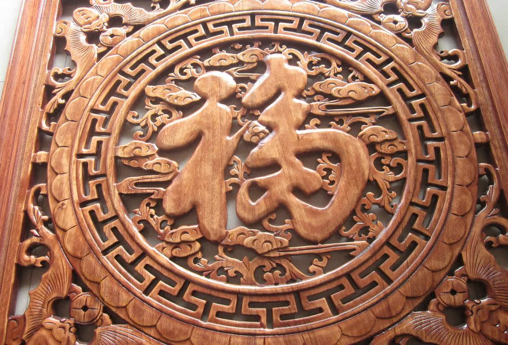 Dongyang wood carving Chinese style decoration fragrant Zhangmu Wufu Living room Xuanguan TV Background wall Wufu Linmenhang pendant