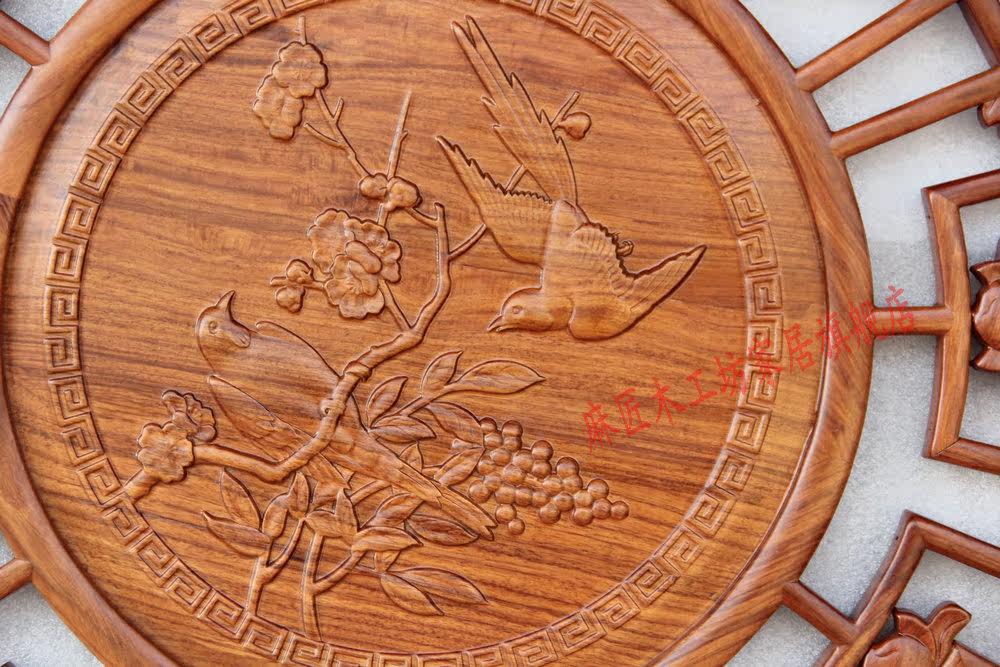 East Yang Wood Carvings Upscale Red Wood Flower Lattice Disc Pendant Reliefs With Raised Eyebrows's Living Room pendant 80cm wall-mounted