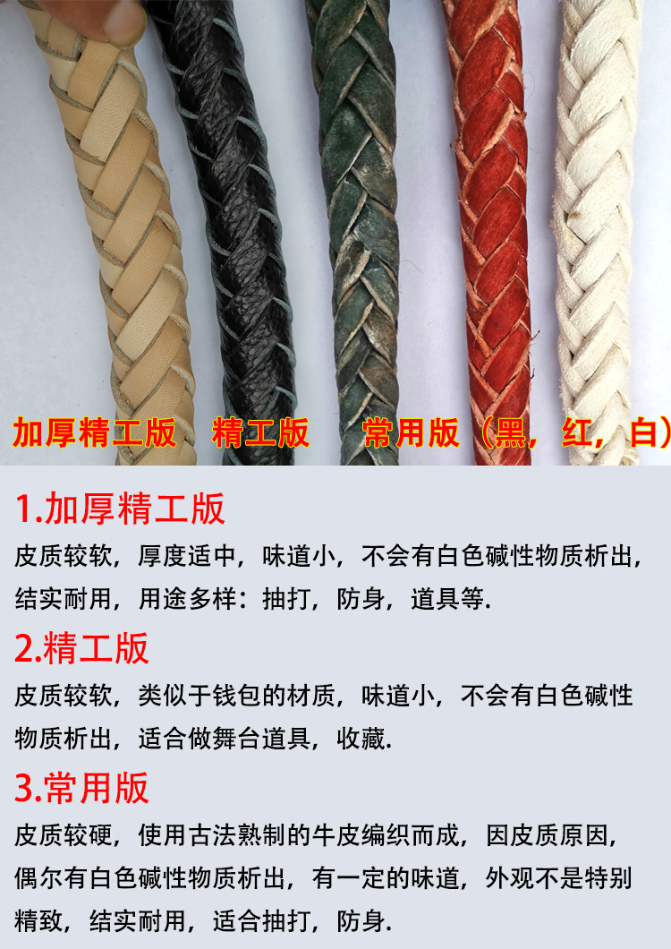 Cowhide Whip Horse Whip Shepherd Dog Self-Defense Whip Whip Fitness Horse Whip Dance Martial Arts Film and Television Props
