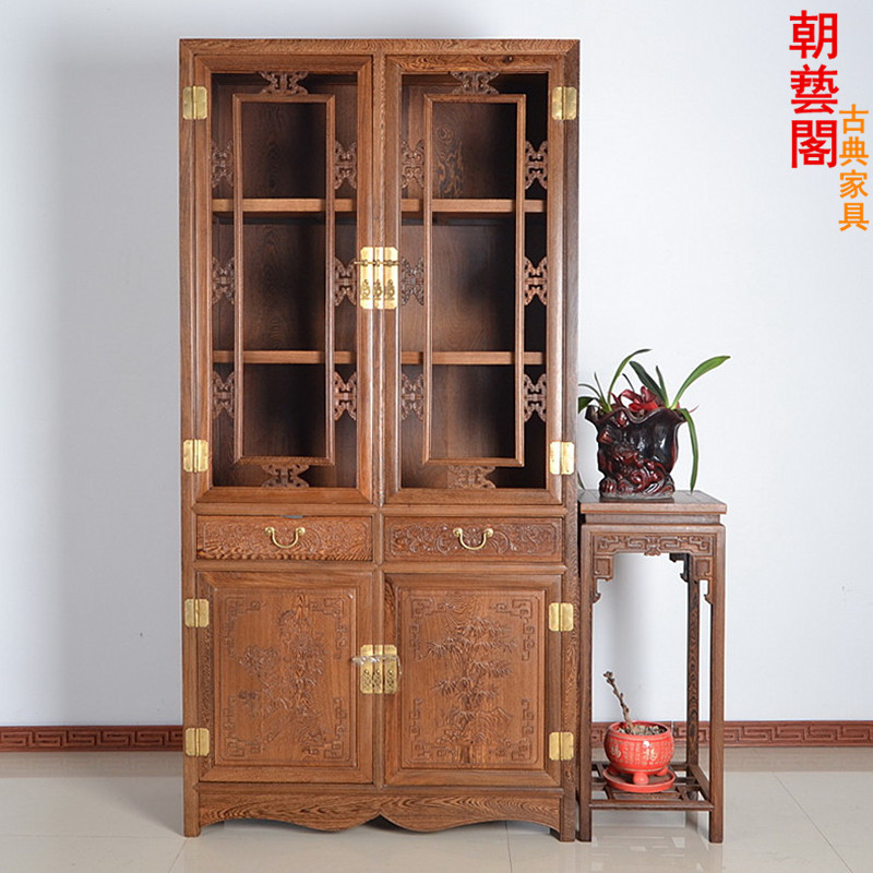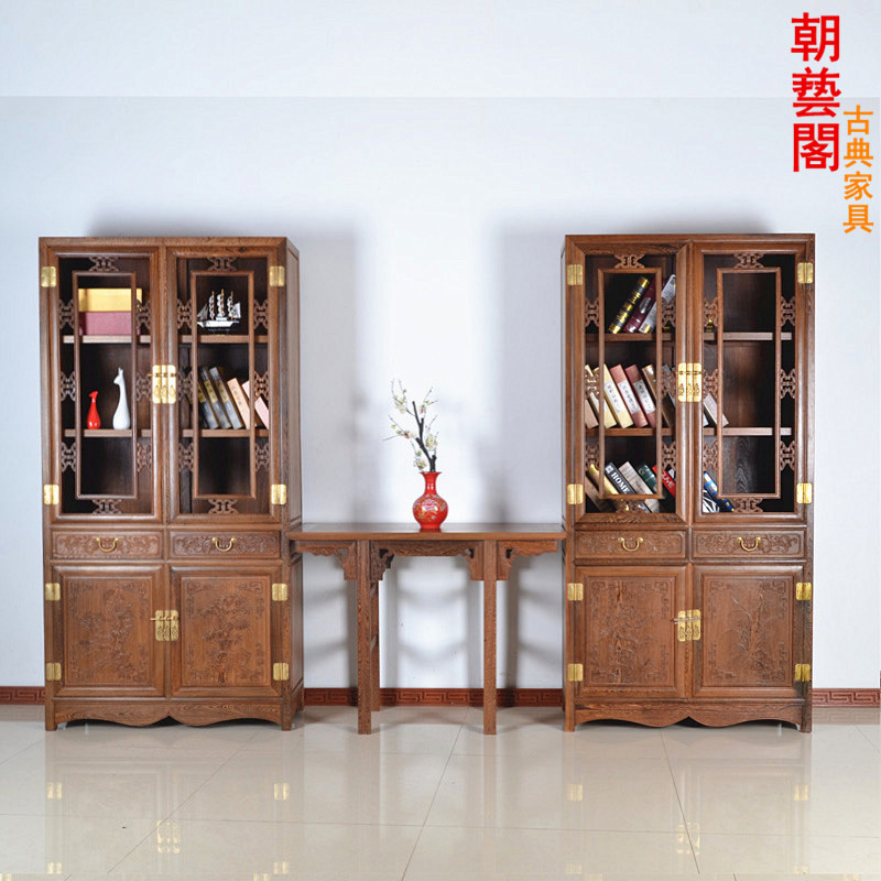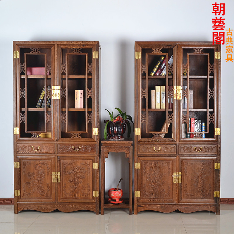 Mahogany furniture chicken wing wood bookcase book overall cabinet storage cabinet study office display cabinet bookshelf Chinese antique solid wood