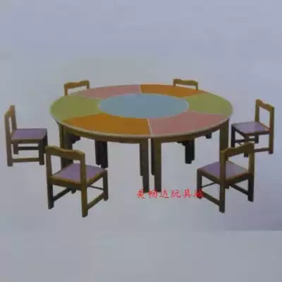 Kindergarten log desks and chairs Children's special tables and chairs fireproof board combination round table learning table factory direct sales