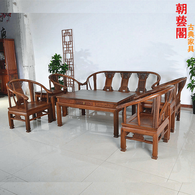 Redwood furniture chicken wings crown sofa eight piece of antique Chinese solid wood living room sofa chair combination