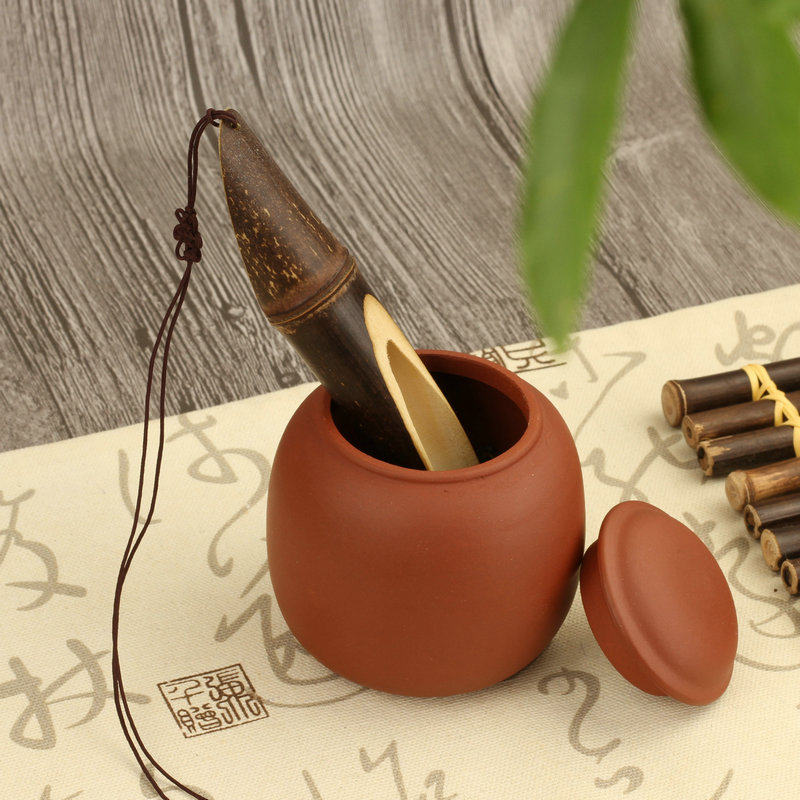 Bamboo tea, purple bamboo tea, and two jade bamboo tea, the color of the carbonized polished tea (about 18 5*6cm) jade bamboo tea (about 17 5*7cm) the primary color long handle tea is milled