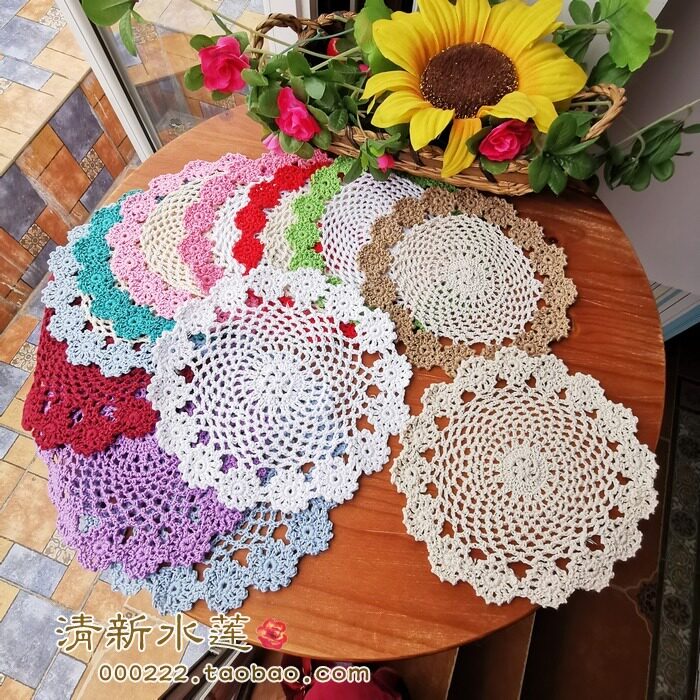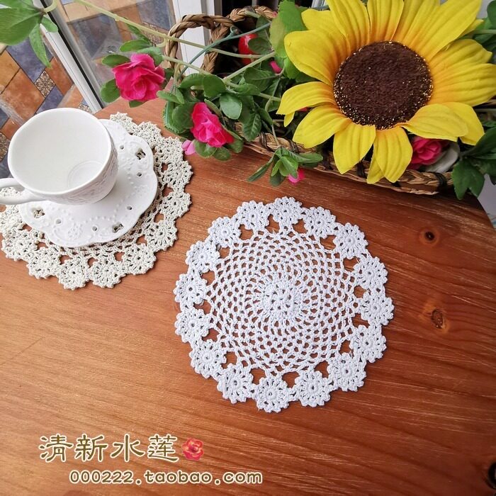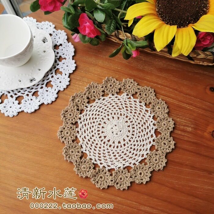 Fresh Water Lotus Hand Crochet Hook Needle Flower Shooting Props ZAKKA Day Single Sensual Retro Pure Cotton Round Table Mat 21cm