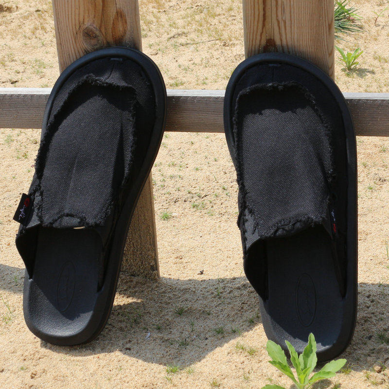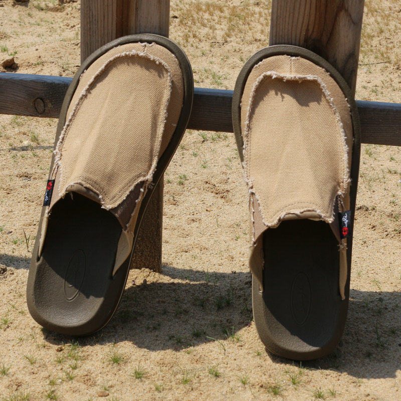 Casual tide drag summer Korean version men's canvas slippers Baotou beach shoes half slippers sandals hollow breathable slippers