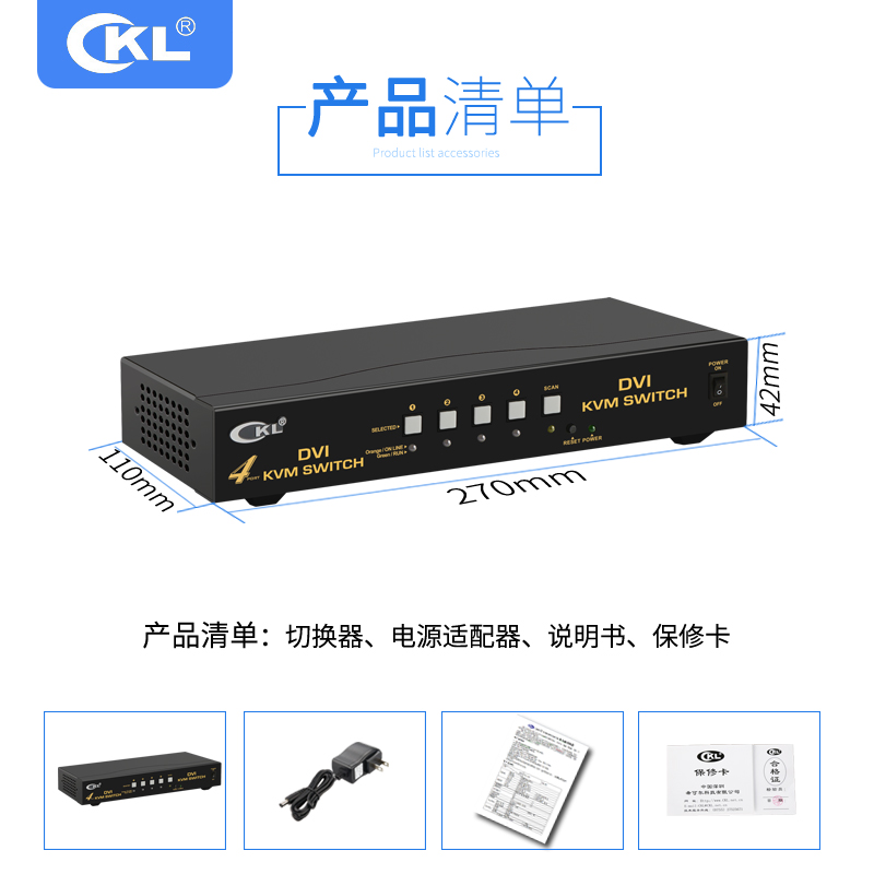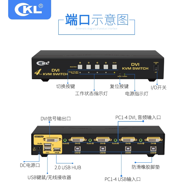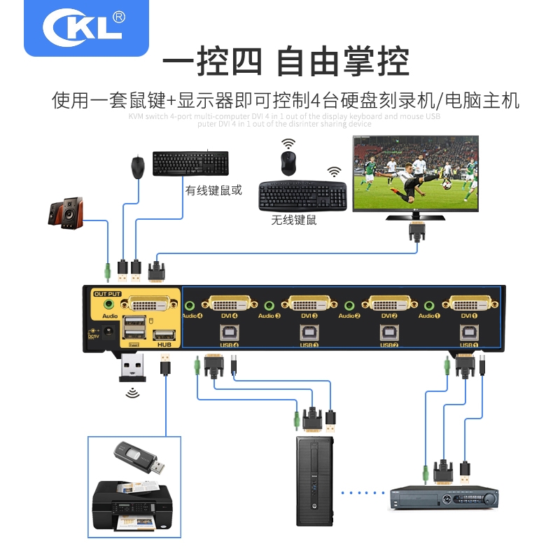 DVI switcher 4 in 1 out KVM switcher high definition computer switcher industrial switcher CKL-94D-Taobao