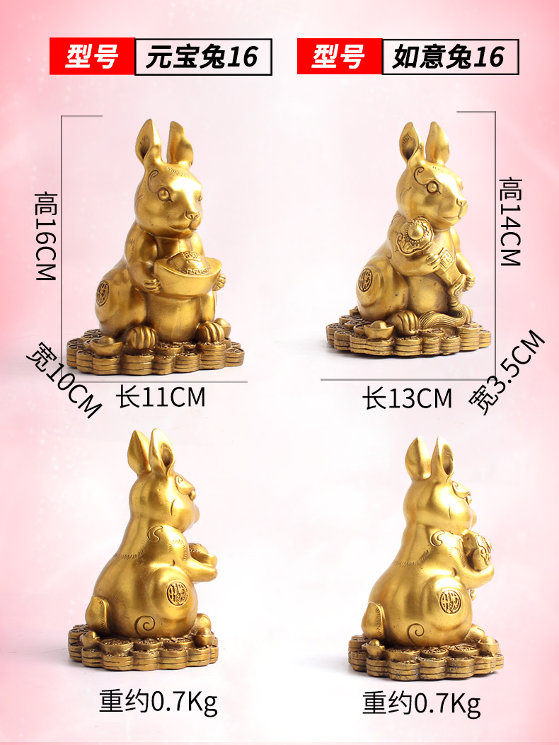 Xuanyou Fengshui twelve zodiac jade rabbit-shaped ornaments metal jewelry golden rabbit pure copper rabbit crafts money rabbit