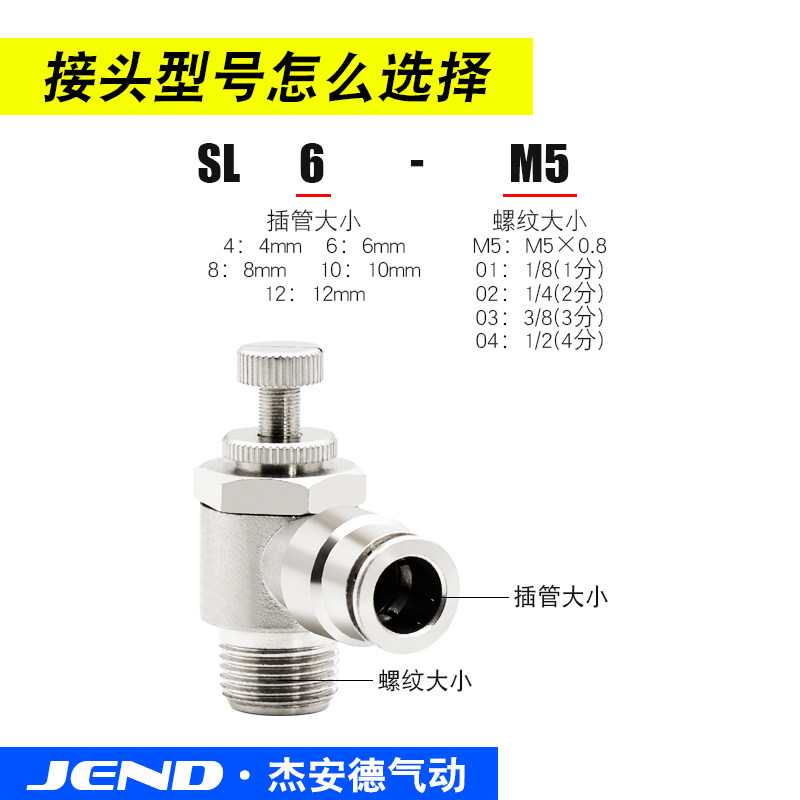 Full copper plated nickel quick insertion tracheopneumatic SL8-02 4-M5 6-01 cylinder throttle valve throttle valve external thread