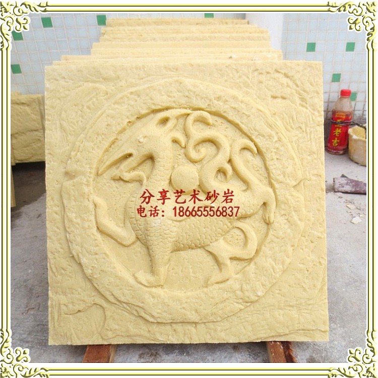 Share Sandstone Round Sculpture Sculptures Sandstone Relief Wall-mounted Courtyard Landscaped Community Town House Feng Shui Pendant Four Gods White Tiger