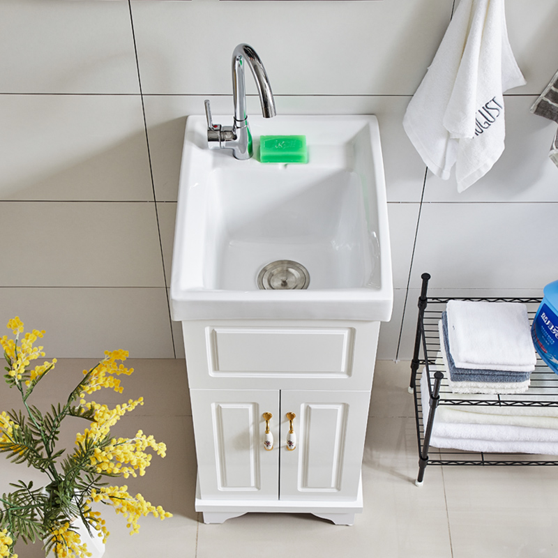 Modern Small Size Bath Room Cabinet Ceramic Wash Basin Solid Wood Laundry Cabinet Balcony Laundry Tank Laundry Table Basin Wash Terrace-Taobao