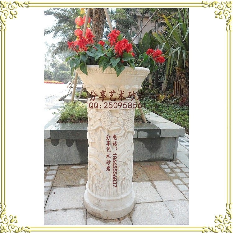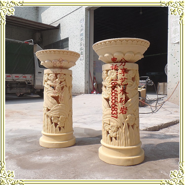 Sandstone European-style sculpture sandstone relief round carving garden courtyard club interior parts through flower art flower pot