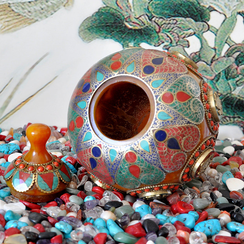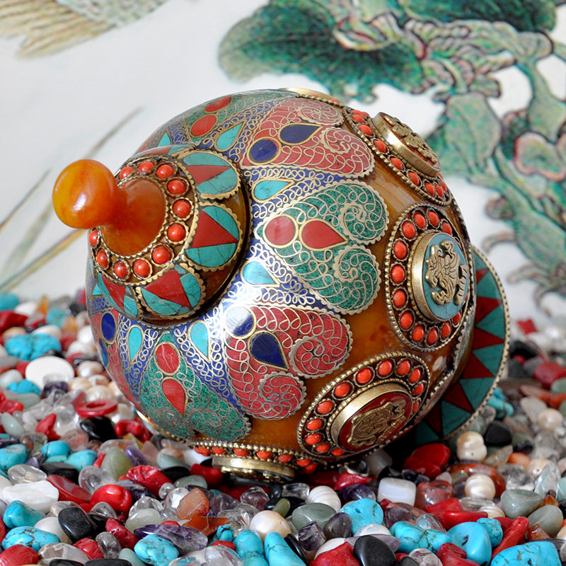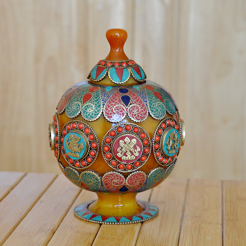 Nepal Imitation Honey Wax Bronze Pinched 8 auspicious Treasure Bottle treasure Treasure Bottle Dragon King Treasure Bottle Rice Box High 17 5cm