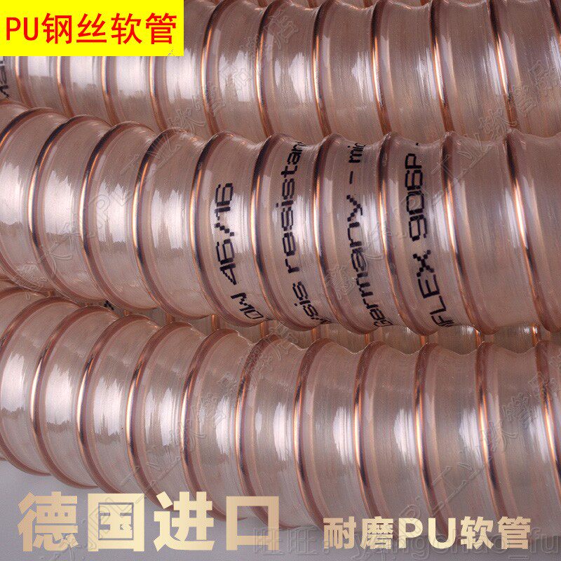 New German translucent PU polyether polyurethane spiral copper-plated steel wire reinforced smooth wear-resistant industrial hose