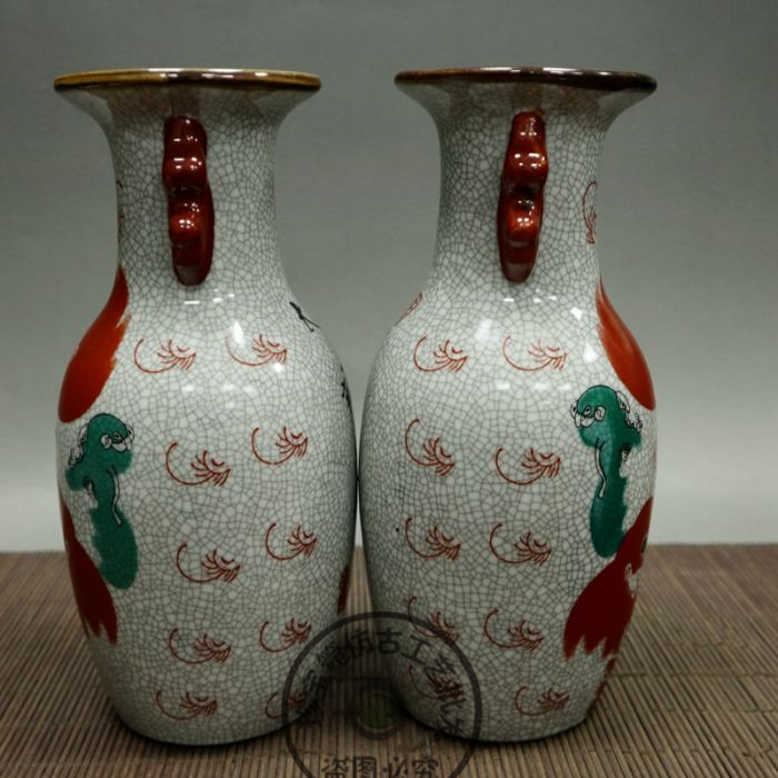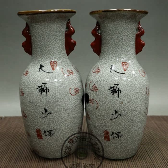 Ancient play Miscellaneous antique porcelain Porcelain tailion with less double ear big vase Retro Chinese Chinese inserted bottle vase