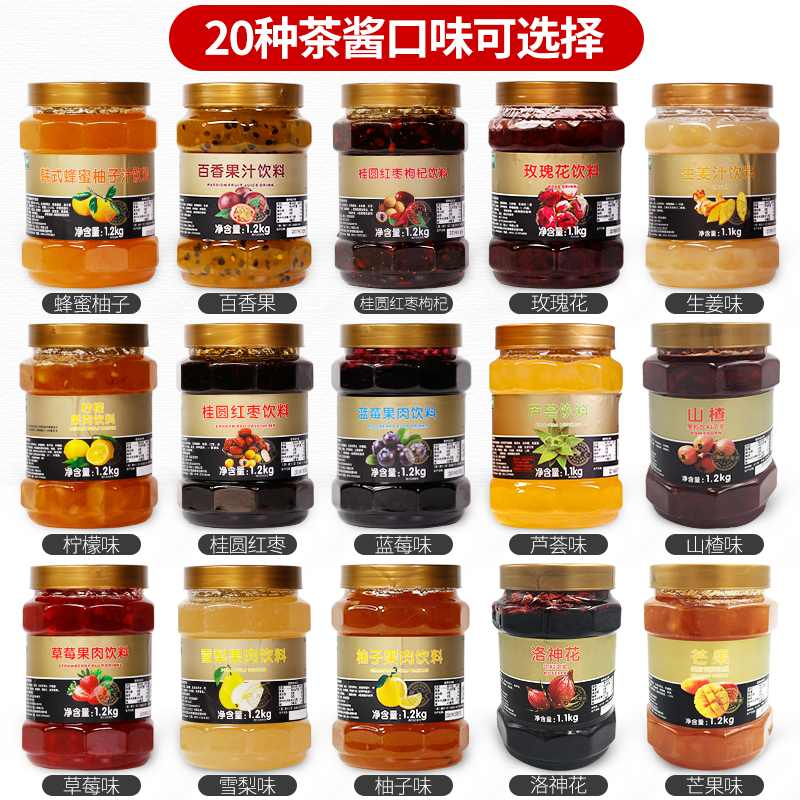 Longan Jujube Tea Sauce Korean Honey Yuzu Tea Sauce Passion Fruit Honey Yuzu Tea sauce Jasmine Strawberry Orange Rock Sugar Aloe Vera Roselle Blueberry Mango Ginger Rose Sydney Hawthorn Lemon