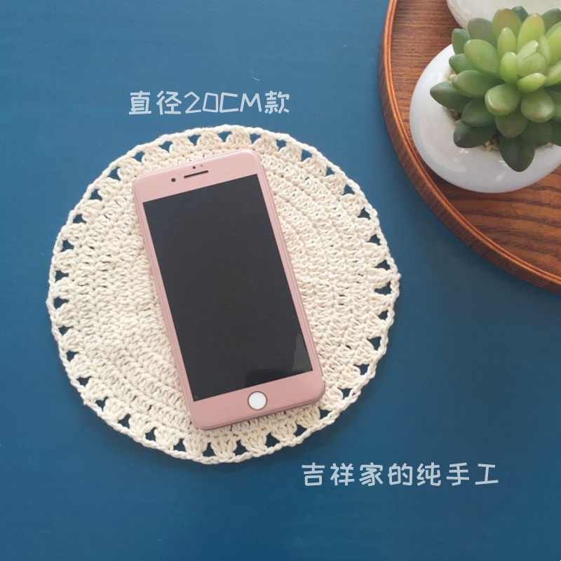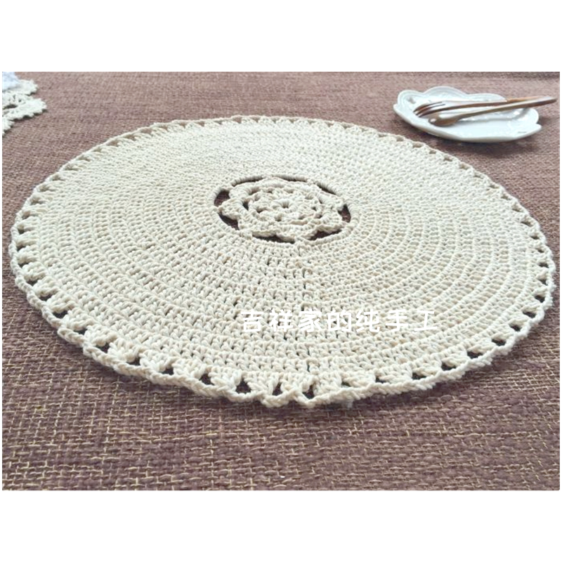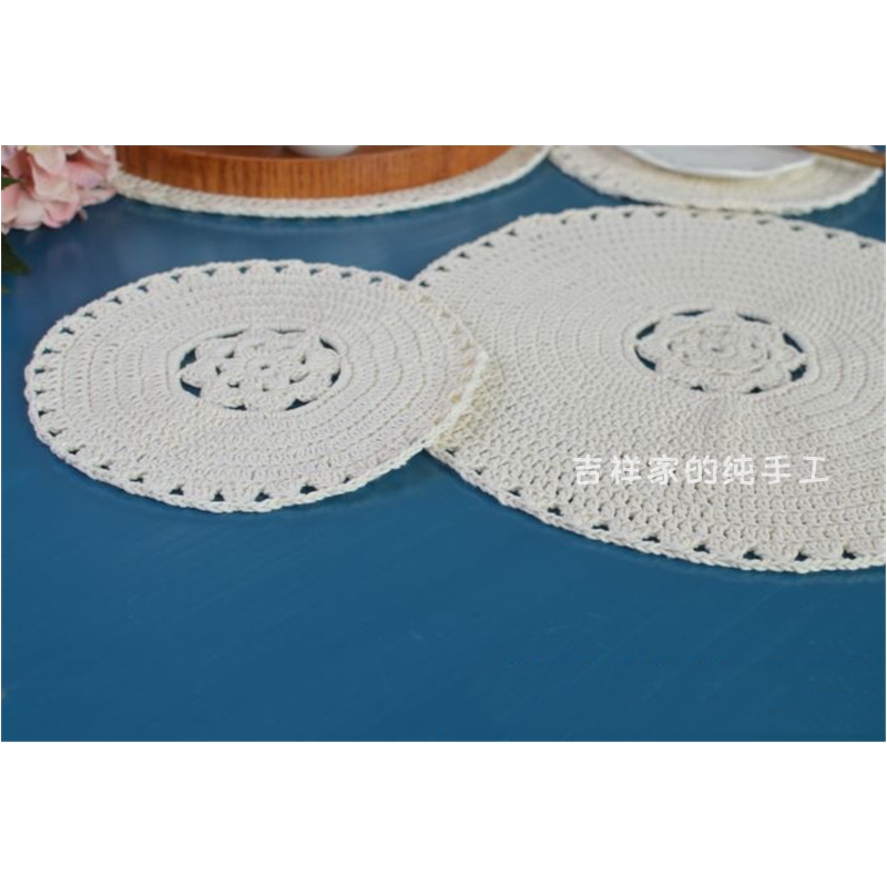Handcrafted Crochet Hook Flower Sensual Pure Cotton Thickened Circular Trim Pan Insulated Table Mat Beige Botanical Garden Flowers