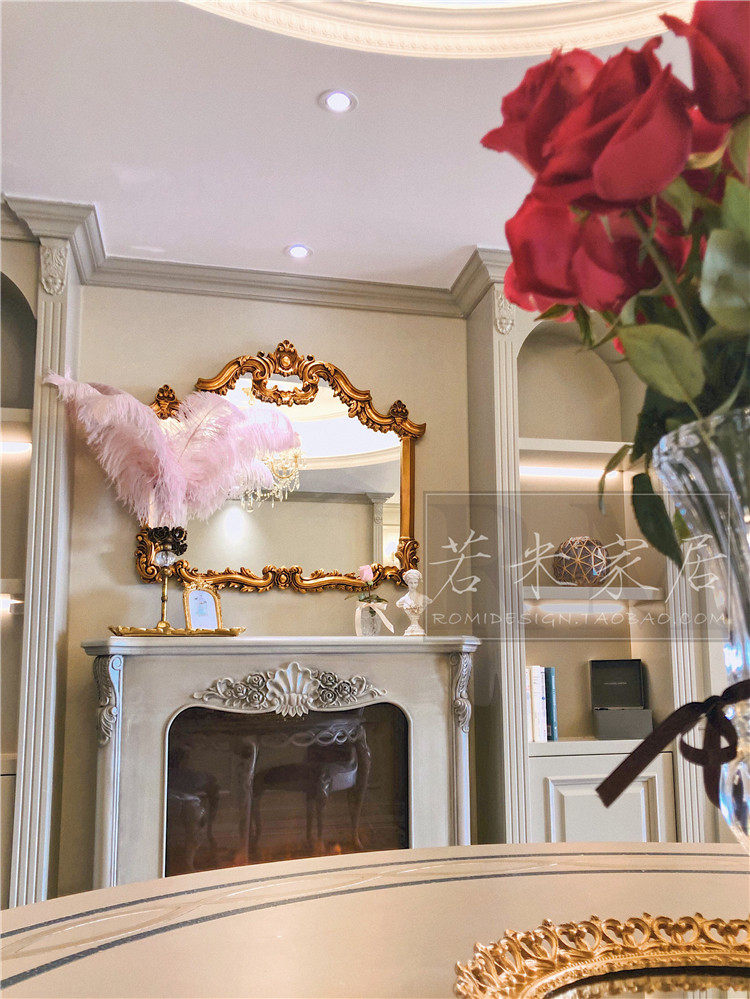 98x86 European and American French gold foil decorative mirror horizontal mirror Bathroom mirror Fireplace mirror Makeup mirror Powder Room mirror