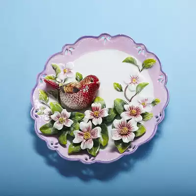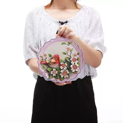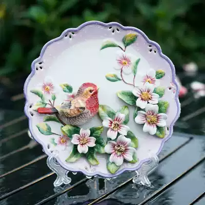 Ceramic pastoral cardinals decoration plate pendulum hanging plate decorative plate wall decoration wall decoration art plate delivery bracket