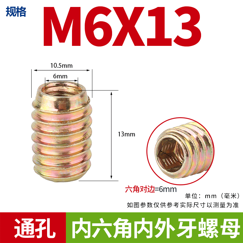 Furniture hardware nuts without intermediate iron nuts straight through inner hexagon inner and outer tooth nuts M6 M8