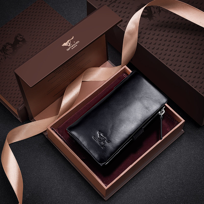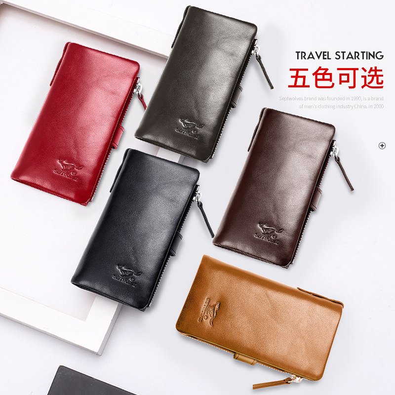 Seven Wolves Key Bag Genuine Leather Laced for men and women Purse Simple Head Layer Cow Leather Large Capacity Car Multifunction Bag