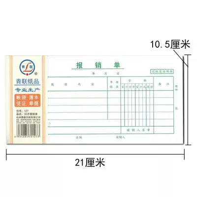 Qinglian 127 reimbursement form 35 Affixed voucher Fee reimbursement bill Financial Bill 210x105mm 75 sheets