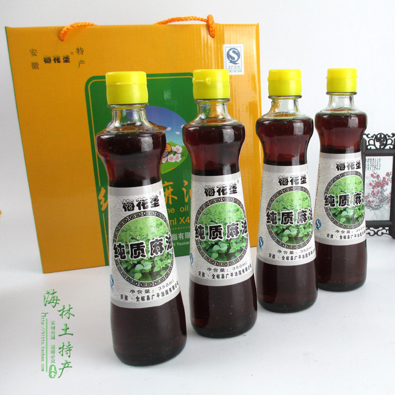 Anhui specialty black sesame oil sesame oil confinement oil full pepper Guangping sesame oil 4 bottles of gift boxed condiments