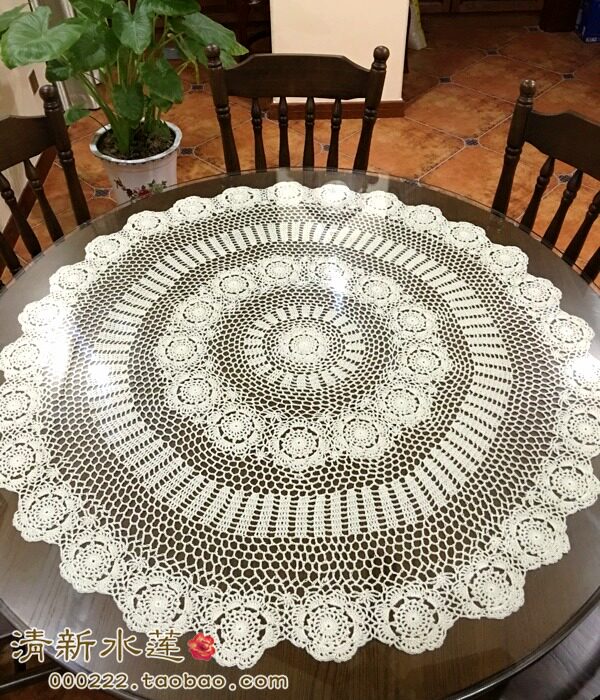 Fresh Water Lotus Manual Crochet Hook Lace American Countryside Pure Cotton Woven Hollowed-out Dust Round Tablecloth White Rice