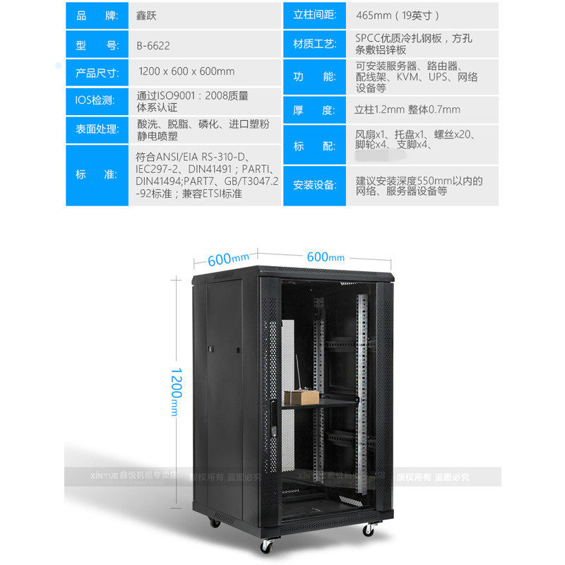 Network cabinet 1.2 meter cabinet 22U24U switch server monitoring amplifier computer 19 inch cabinet