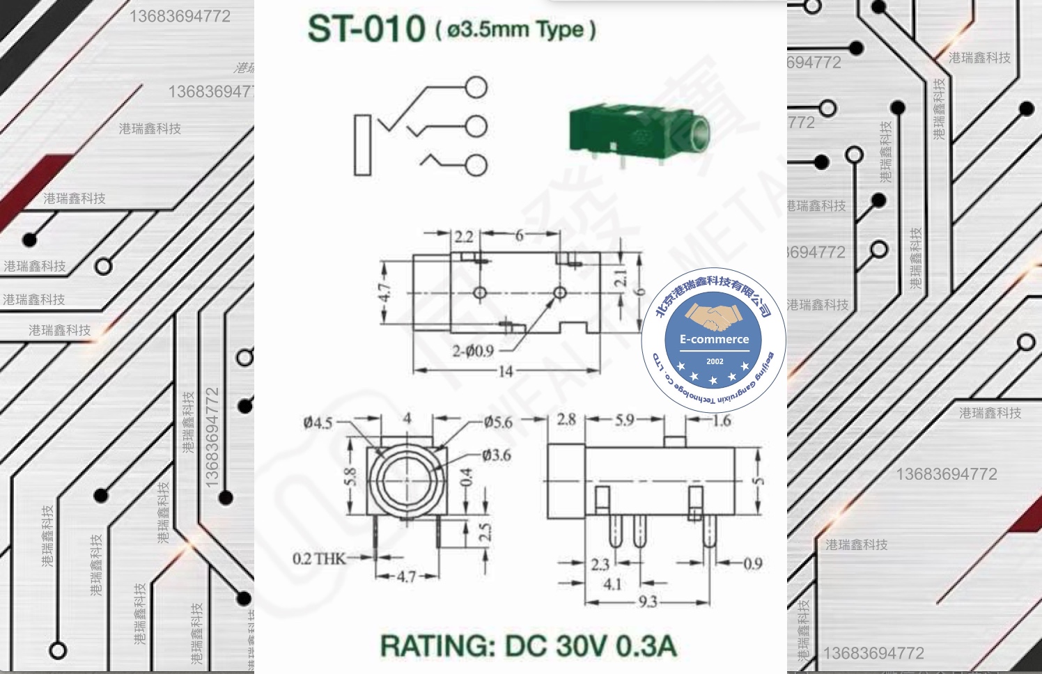 ST-010 Headphone Jack 3 5MM Audio Socket Stereo Circuit DC Power Connect Port Rixin Tech