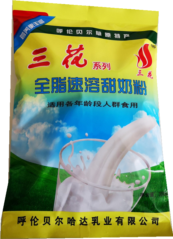 Full 4 bags Inner Mongolia Lun Belte Produce Bagged Three Flowers Full Fat Instant Sweet Milk Powder Adults 350g