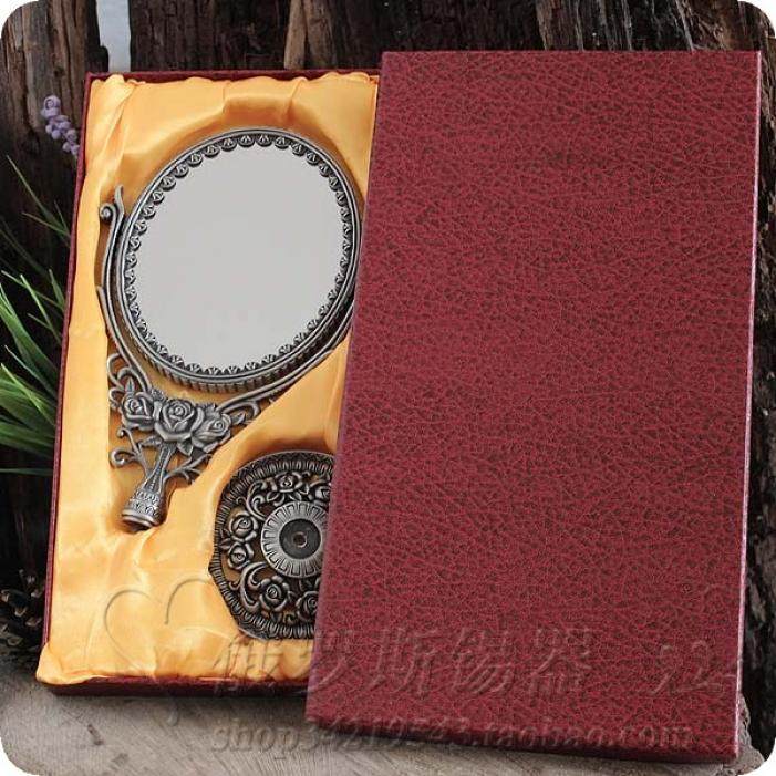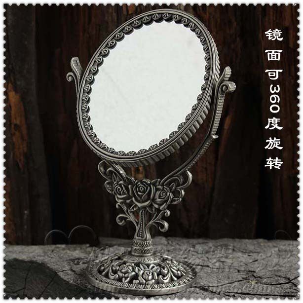 Tin beauty mirror Russian Tin double-sided desktop makeup mirror European oval metal makeup mirror