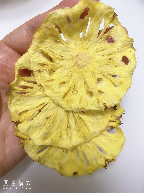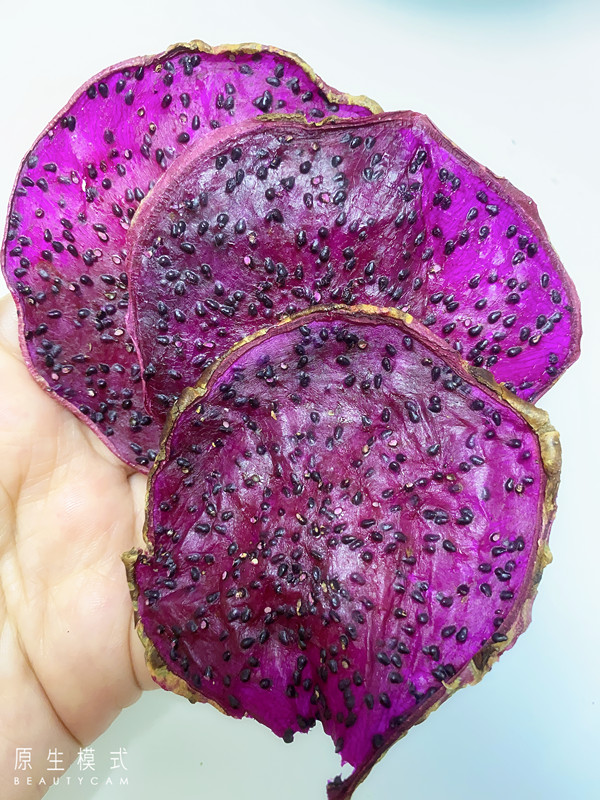 10 grams of dried coconut, 30 grams of dried banana, 15 grams of diced apple, 15 grams of kiwi crisps, 10 grams of frozen dried strawberries, 10 grams of frozen dried figs (two and a half pieces), 3 pieces of dried kiwi fruit, 2 pieces of dried pineapple, 2 pieces of dried dragon fruit