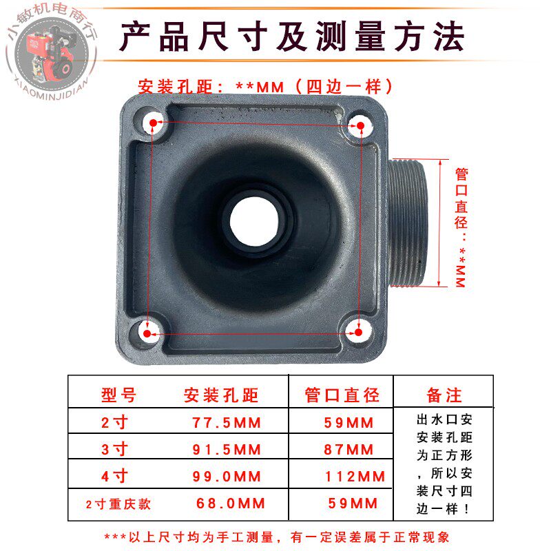 Petrol Engine Water Pump Accessories 2 Inch 3 Inch 4 Inch Water Outlet Seat 168F 170F 188 Pump Water Elbow
