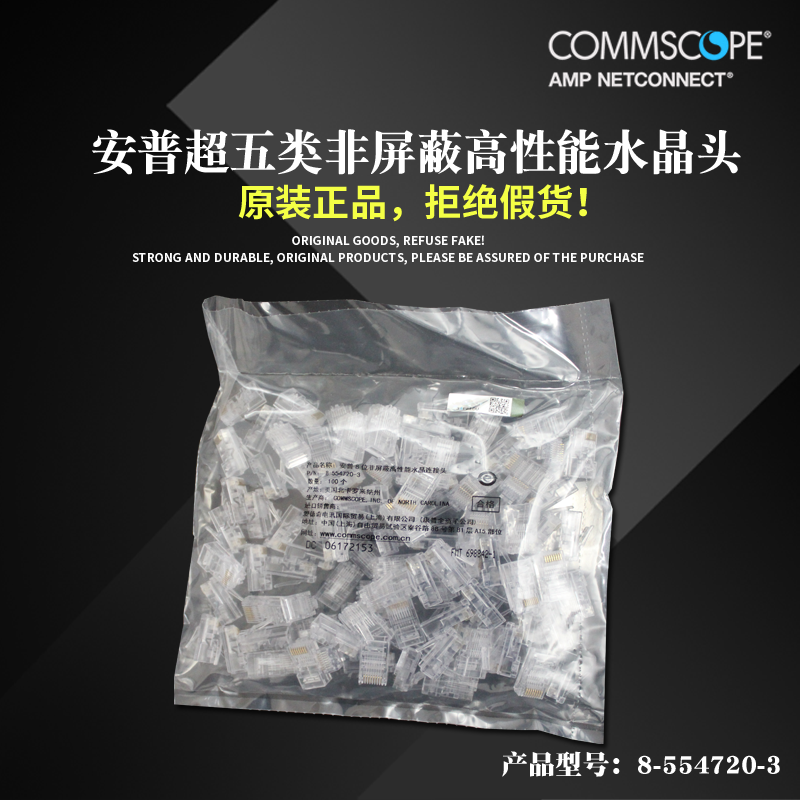 With anti-counterfeiting original AMP Commscope crystal head 8-554720-3 super five RJ45 network crystal head network cable head 8-core super five unshielded RJ45 network cable connector 1