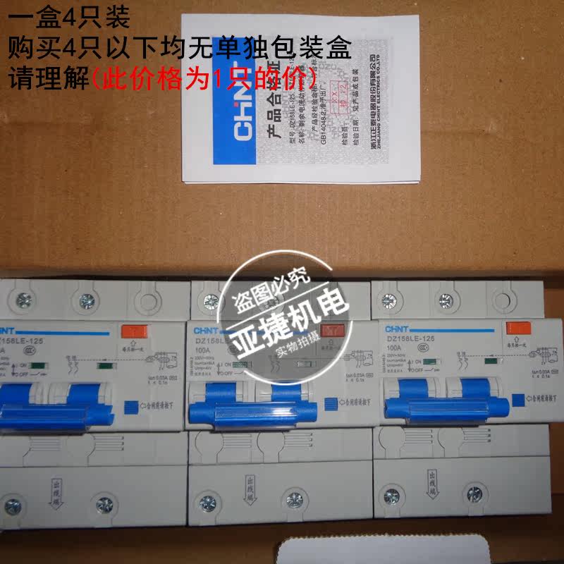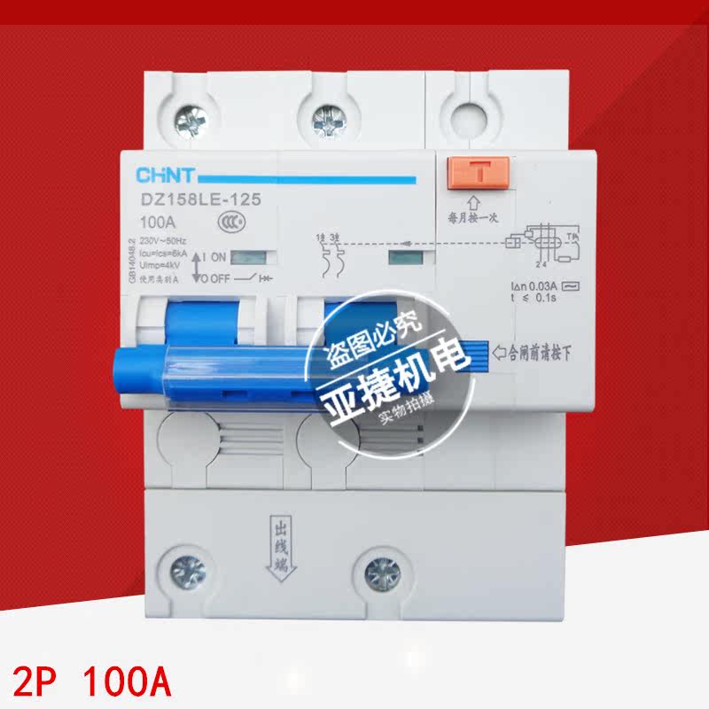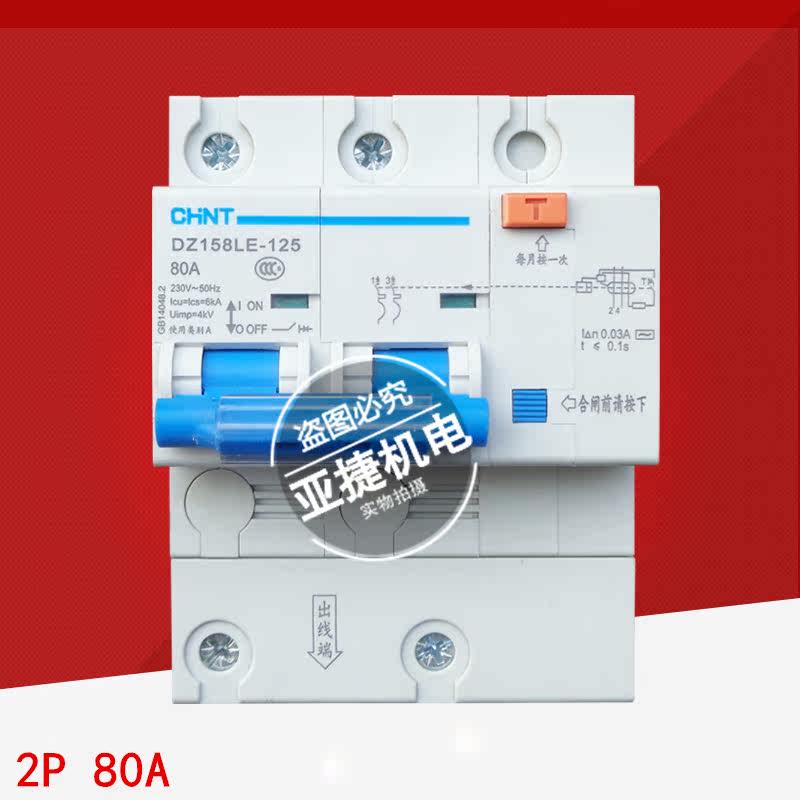 Zhengtai earth leakage protection breaker DZ158LE-125 2P 80A 100A CHNT 220V leakage protection switch