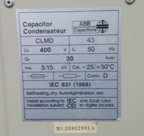 New ABB capacitor CLMD43 30KVAR 400V 50HZ CLMD 43 30 KVAR