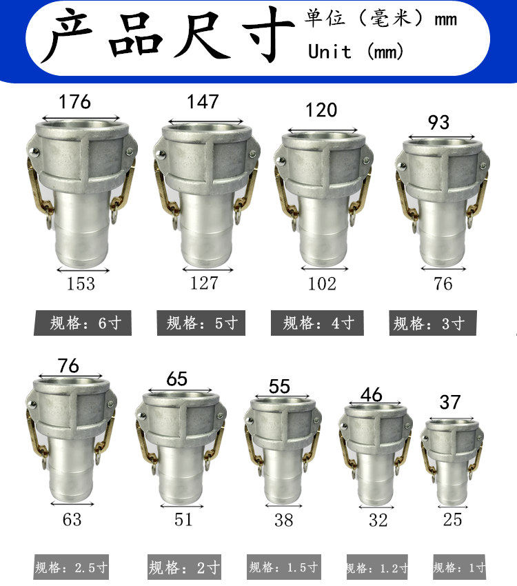 Oil tanker accessories aluminium alloy quick joints C type female end 2 5 inch 3 inches 4 inch female head male head oil pipe connector yang